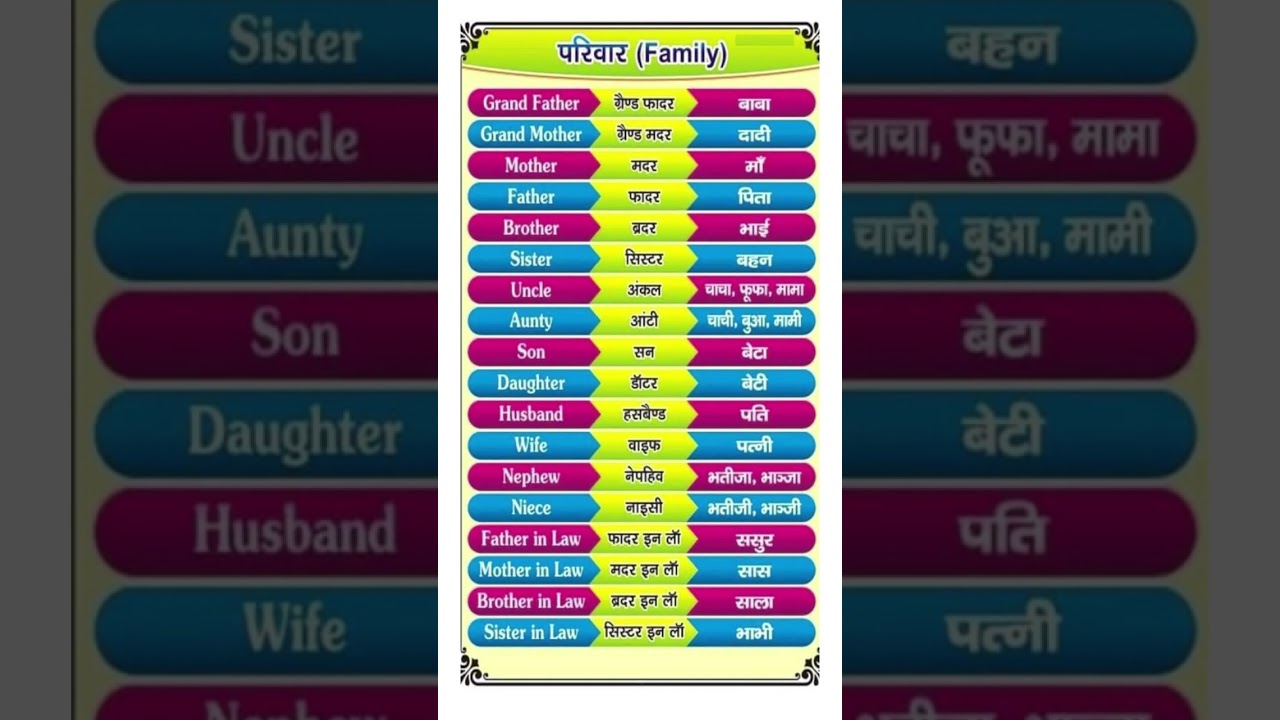 relation name #relation name in english, #relationship name in hindi #relationship name in english #all relationships name hindi ...