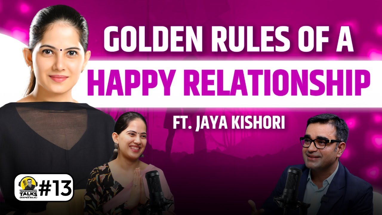 डोंट बी इन अ रश कोई अच्छा लगा अच्छा दिख रहा है सब कुछ अच्छा है हार्मोंस हाइप्ड अप हो गए हां रिलेशनशिप में आ गए शादी भी कर ली और फिर कुछ टाइम बाद ऐसा लग रहा है नहीं नहीं ये तो ऐसा है नहीं तो पहले देख लेते हमारा जो ज्यादा काम होता है वो यंगस्टर्स के साथ है और वहां पे ब्रेकअप्स रिलेशनशिप इश्यूज दे आर अफेक्टिंग पीपल इमोशनली आल्सो फाइनेंशली आल्सो दे आर नॉट एबल टू फोकस आल्सो आंखें खुली रखो लव इज ब्लाइंड को प्लीज हटाइए लव इज नॉट ब्लाइंड अट्रैक्शन इज ब्लाइंड फिर लव है क्या अगर हम हाउ डू आई साइड दिस पर्सन इज राइट फॉर मी और नो जब आप लड़ाई कर रहे हो तब तो प्यार एकदम ही गायब हुआ हुआ रहता है पर तब सम्मान रहता है इफ यू आर नॉट रिस्पेक्टेड यू शुड गेट आउट ऑफ दैट रिलेशनशिप हैंडल योर प्रॉब्लम्स ऑन योर ओन डोंट वेट फॉर अ सर्टेन पर्सन टू कम एंड मेक यू बेटर तब आपके को नशा चढ़ा था प्यार का बहुत आपकी आंखें बंद थी अब आंखें खुल गई है तो आपको यही बिहेवियर टॉक्सिक लग रहा है पर वो डे वन से टॉक्सिक था सर और मुझे लगता है मुझे मेरा फोकस पैसे करियर सब है तो शुड आई अवॉइड गेटिंग इनटू अ रिलेशनशिप नमस्कार स्वागत है आपका ट्रांसफॉर्मेशन टॉक्स विद दीपक बजाज के अगले एपिसोड में एंड एम वेरी वेरी एक्साइटेड टुडे बिकॉज हमारे साथ आज जो इस शो में है वो बहुत कमाल के गेस्ट हैं करोड़ों लोगों के जीवन में वो एक प्रेरणा की स्त्रोत है लोगों को सही रास्ते पे चलने के लिए उनका मार्गदर्शन करती हैं हजारों की संख्या में लोग लाखों की संख्या में लोग उन्हें लाइव सुनने के लिए आते हैं और हम सबका आज सौभाग्य है कि हम सबके साथ वो इस समय हमारे इस शो में है ट्रांसफॉर्मेशन टॉक्स विद दीपक बजाज पे तो हम सब लोग मिलकर दिल की गहराइयों से स्वागत करेंगे जया किशोरी जी का स्वागत है आपका जया जी थैंक यू सो मच वी आर सो ब्लेस्ड टू हैव यू विद अस एंड आई एम वेरी हैप्पी कि आपने मुझे इनवाइट किया सो थैंक यू सो मच हमारा जो ज्यादा काम होता है वो यंगस्टर्स के साथ है और वहां पे ब्रेकअप्स रिलेशन इश्यूज दे आर अफेक्टिंग पीपल इमोशनली आल्सो फाइनेंशली आल्सो दे आर नॉट एबल टू फोकस आल्सो सो हाउ डू पीपल अब फिर मैं आपसे पूछूंगा भाई कि क्विक टिप दे दीजिए शायद इसके लिए क्विक टिप नहीं चाहिए होगा कुछ फाउंडेशन चाहिए होगी बट फिर भी हाउ डू पीपल या यंगस्टर्स और एनीबडी डील विद ब्रेकअप्स रिलेशनशिप इश्यूज और रिलेशनशिप चैलेंज अ आई थिंक ब्रेकअप और बाकी चीजों से डील करना फिर भी एक सेकेंडरी मैटर है पहले उस रिलेशनशिप में रहना ही ढंग से बहुत बड़ी बात है एब्सलूट क्योंकि अगर वो होगा तो शायद आप ब्रेकअप तक पहुंचेंगे तो पहला आई ऑलवेज से टेक योर टाइम डोंट बी इन अ रश कोई अच्छा लगा अच्छा दिख रहा है सब कुछ अच्छा है हार्मोंस हाइ